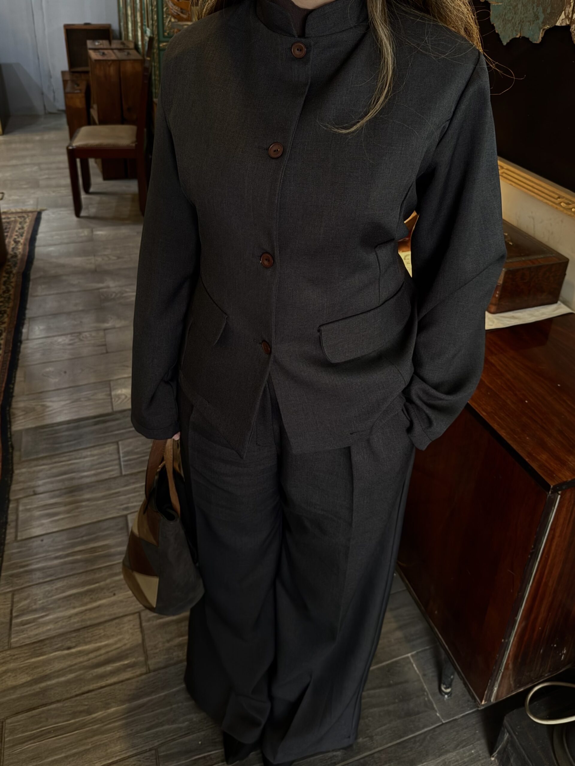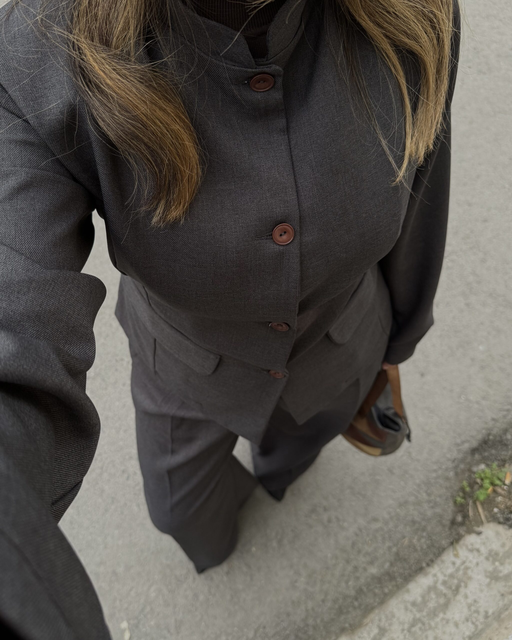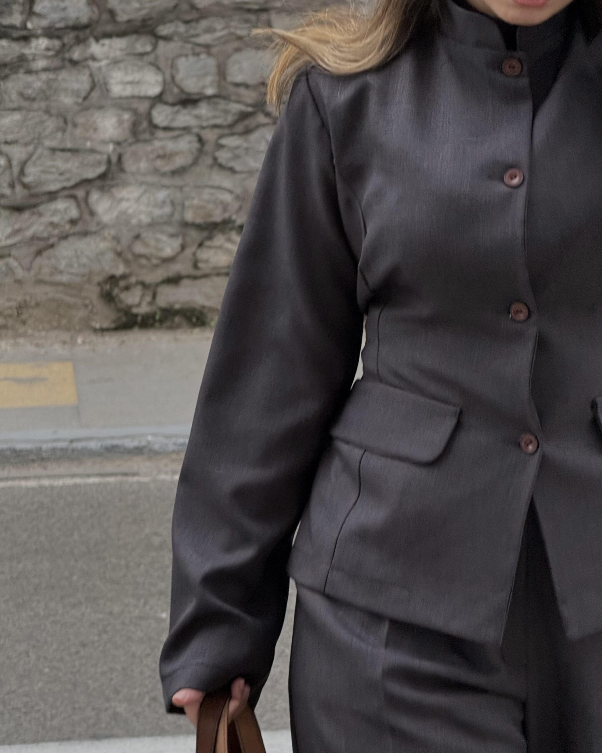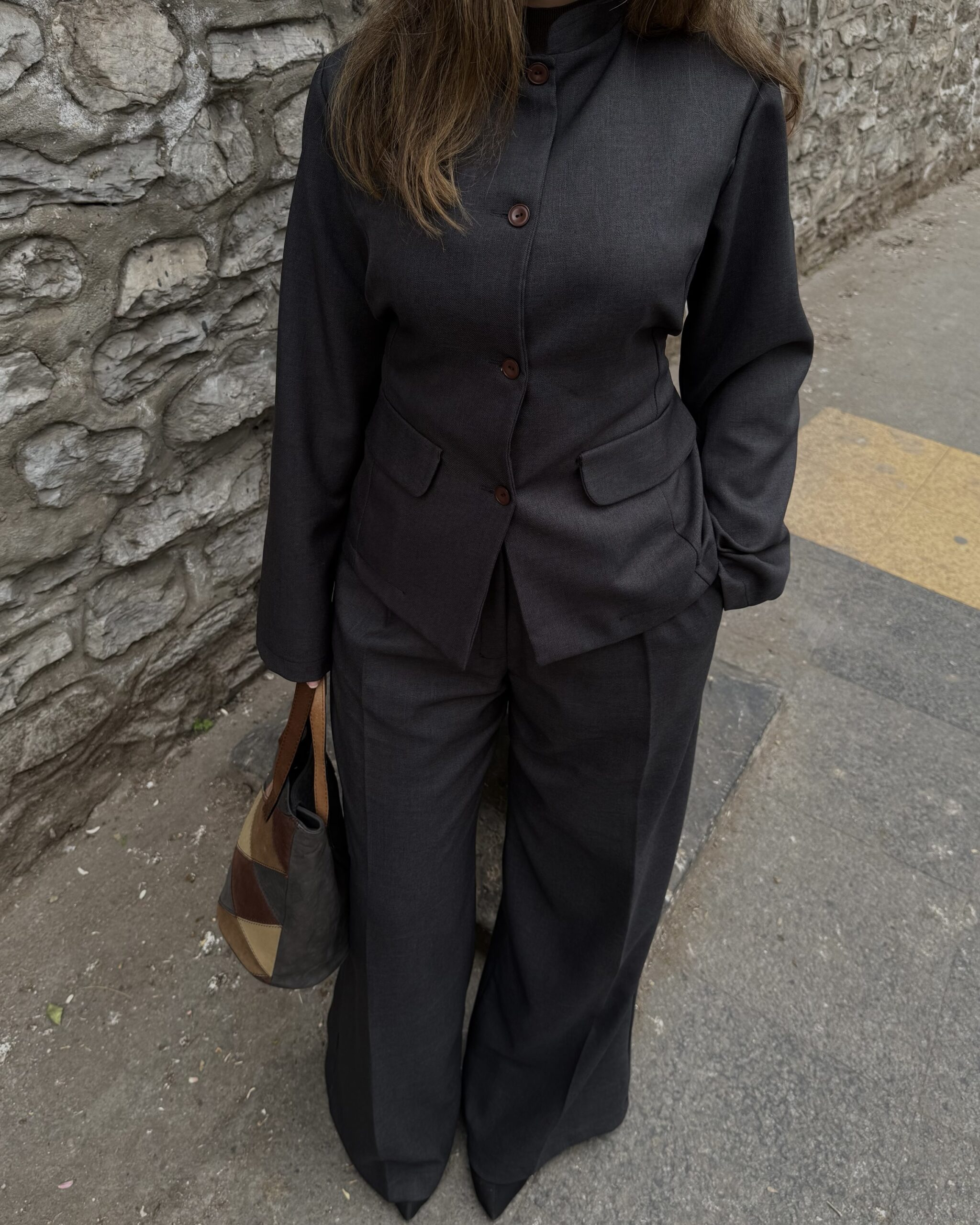 Blazer à coupe droite, épaules subtilement définies et finitions soignées pour une allure maîtrisée