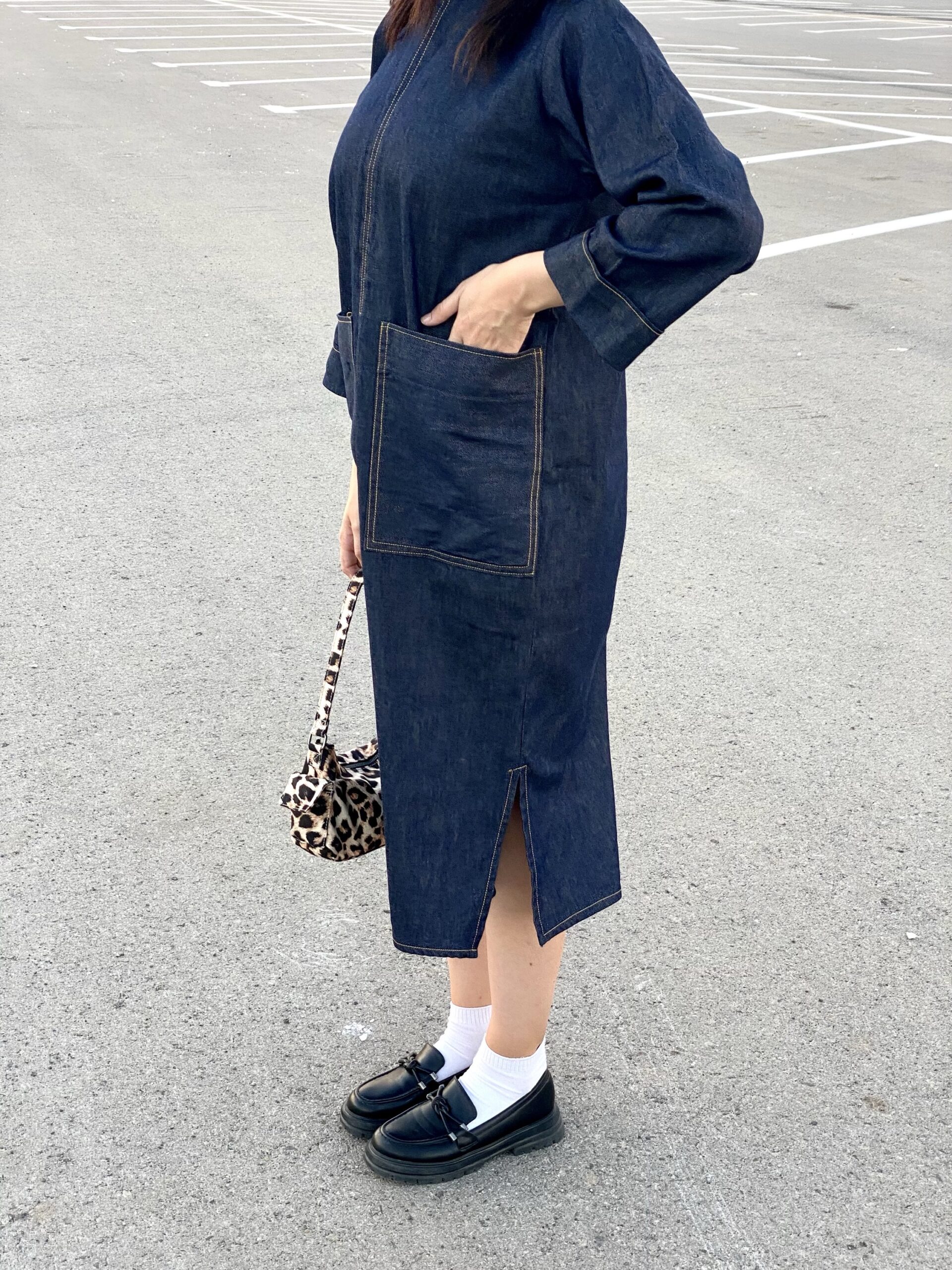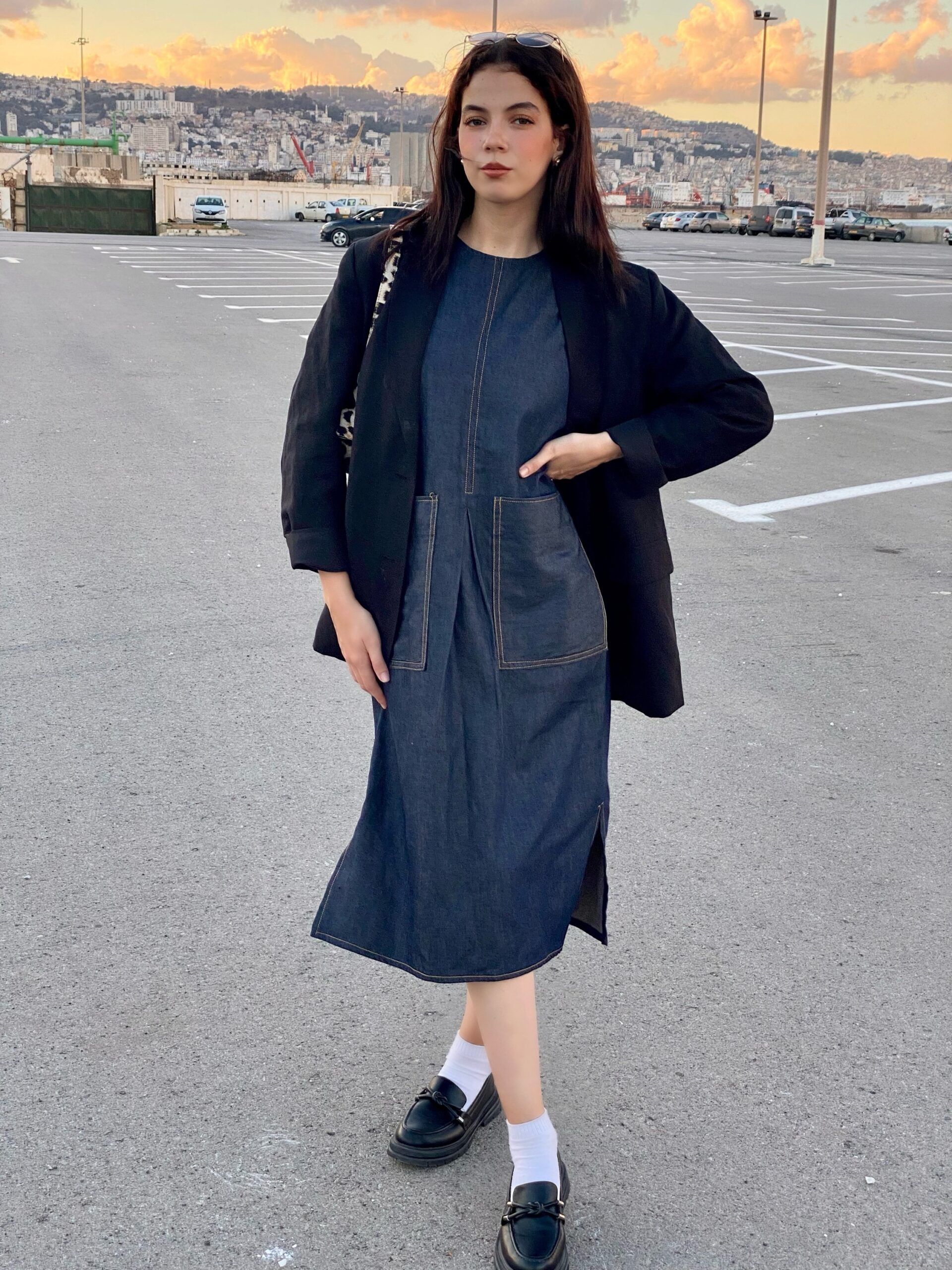 Elle se distingue par ses poches plaquées, apportant une touche pratique et stylée. Conçue avec une finition soignée, elle met en valeur la silhouette avec élégance tout en restant confortable. Idéale pour la saison 2024-2025, cette pièce intemporelle reflète la mode actuelle des robes en denim, à la fois chic et facile à porter au quotidien.
